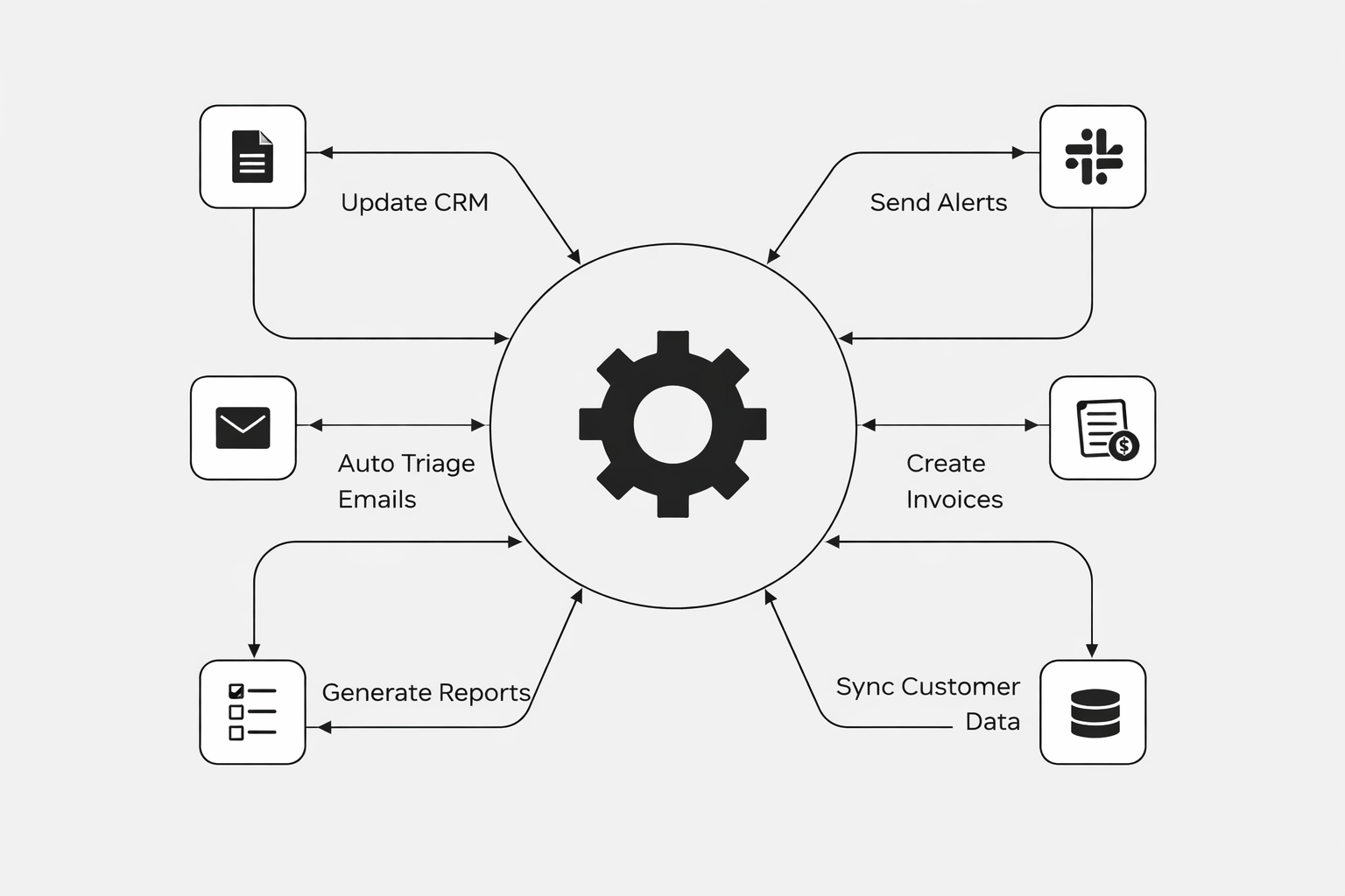 Most businesses are stuck doing the same tasks every day. Copying data, responding to emails, generating reports, chasing issues.